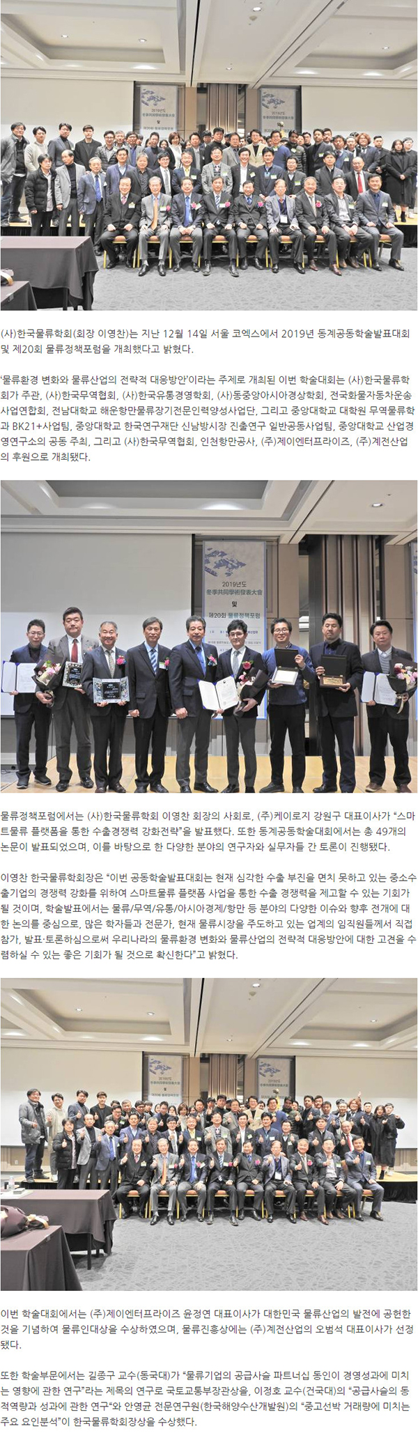 제목 2019년 동계공동학술발표대회 및 제20회 물류정책포럼 (주)계전산업 후원